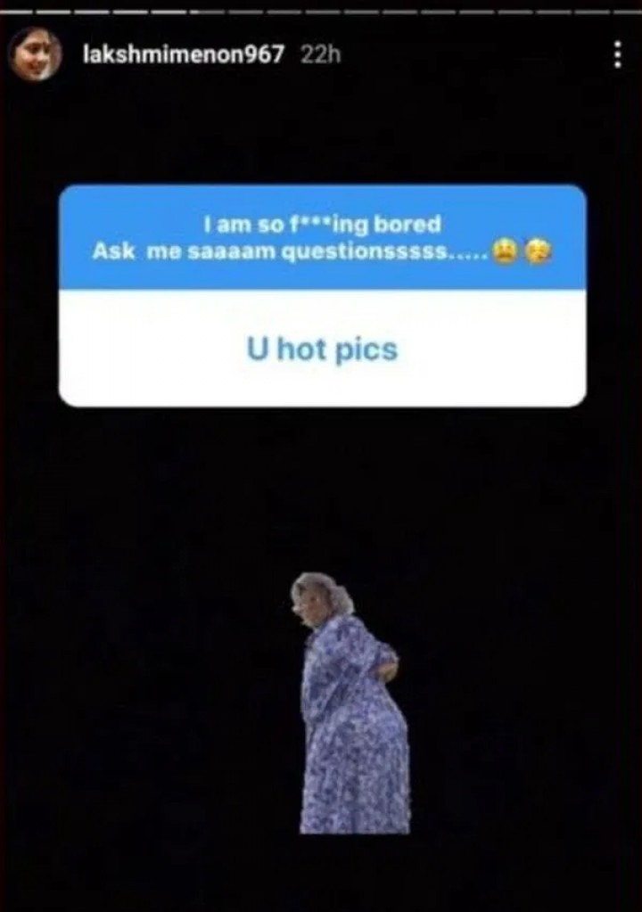 இதற்கு பதிலளித்த லக்ஷ்மி மேனன் பச்சையாக ஒரு கெட்ட வார்த்தையை கூறி ஒரே மாதிரி கேள்விகளால் எனக்கு போரடிக்குது என பதில் கூறி ஒட்டு மொத்த ரசிகர்களையும் ஷாக் ஆக்கியுள்ளார்.